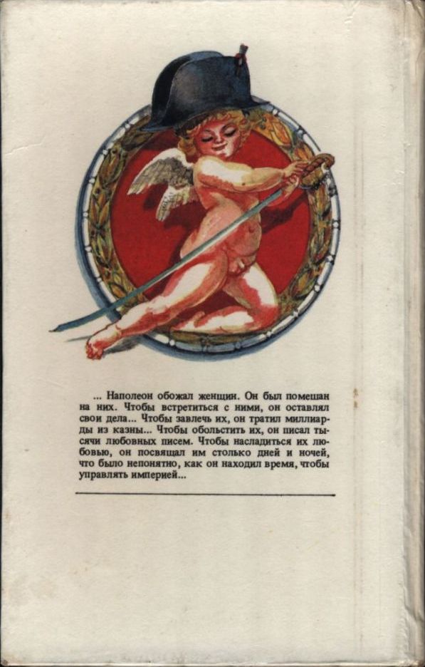«…Расставшись на вершине славы с той женщиной, которую с суеверной восторженностью называл “своим добрым ангелом”, император вручил свою душу и тело возненавидевшей его чувственной принцессе. Став марионеткой в опытных руках этой молодой женщины, которой удалось сделать для него свою постель самым упоительным полем битвы, за четыре года он потерял империю, которую создавал на протяжении целых пятнадцати лет непрестанной борьбы.Вот уже сто пятьдесят лет, как историки не могут найти ответа на один и тот же вопрос: побуждая властелина Европы изнурять себя любовными утехами, не следовала ли Мария-Луиза родительскому наказу? Историки утверждают, что император Австрии Франциск I дал своей дочери весьма определенные указания относительно того, что именно она должна делать, чтобы разрушить здоровье Наполеона. Неспособные его победить в честном бою, они сговорились одержать над ним победу через его постель. Таким путем враги самого великого полководца всех времен и народов нашли только единственное оружие для борьбы с ним – женщину…» Перевод: В. Егоров